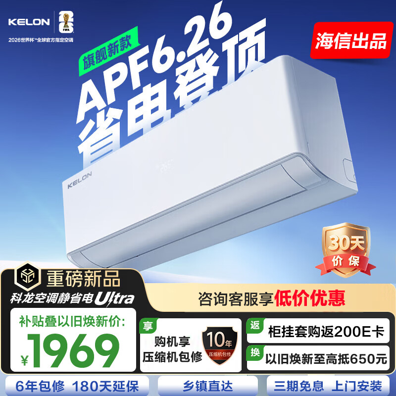 科龙空调大1.5匹 海信出品 静省电Ultra 新一级变频冷暖挂机双排顶配以旧换新KFR-35GW/QS1Ultra-X1