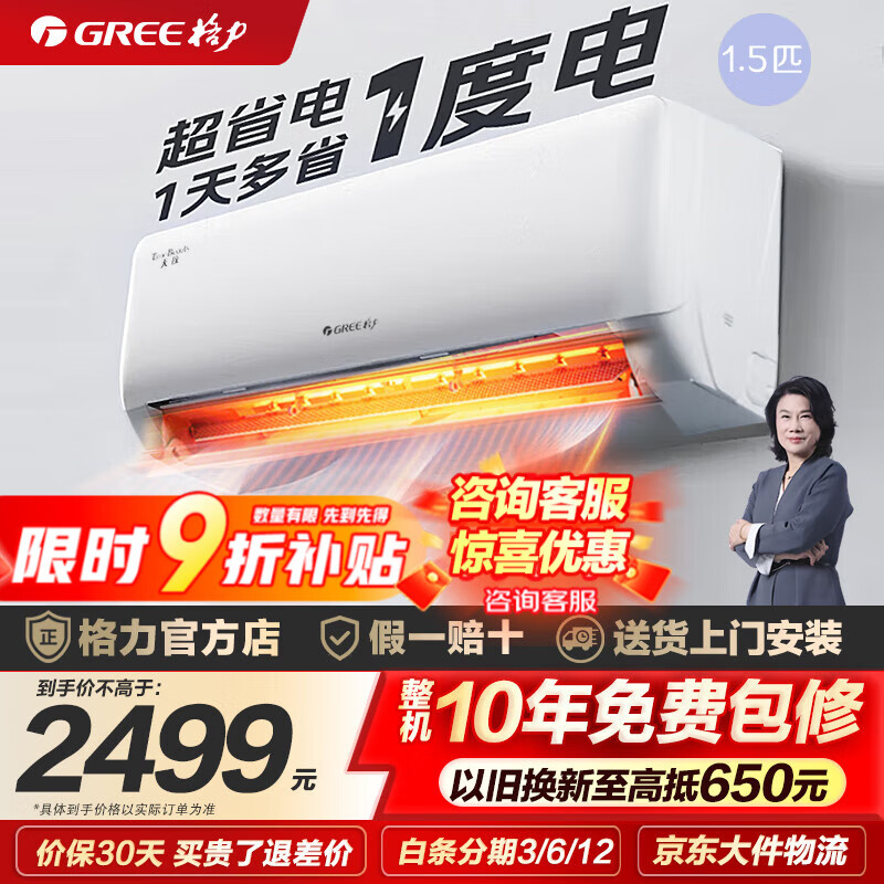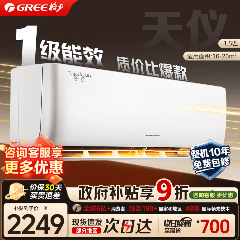 格力(GREE)空调 大1.5匹 天仪/云佳 新一级能效 省电 变频冷暖 官方正品 卧室空调挂机 以旧换新 国家补贴8折 天仪 1.5匹 一级能效【热销爆款】