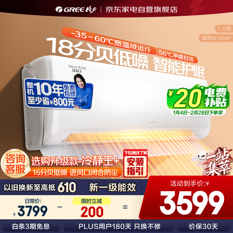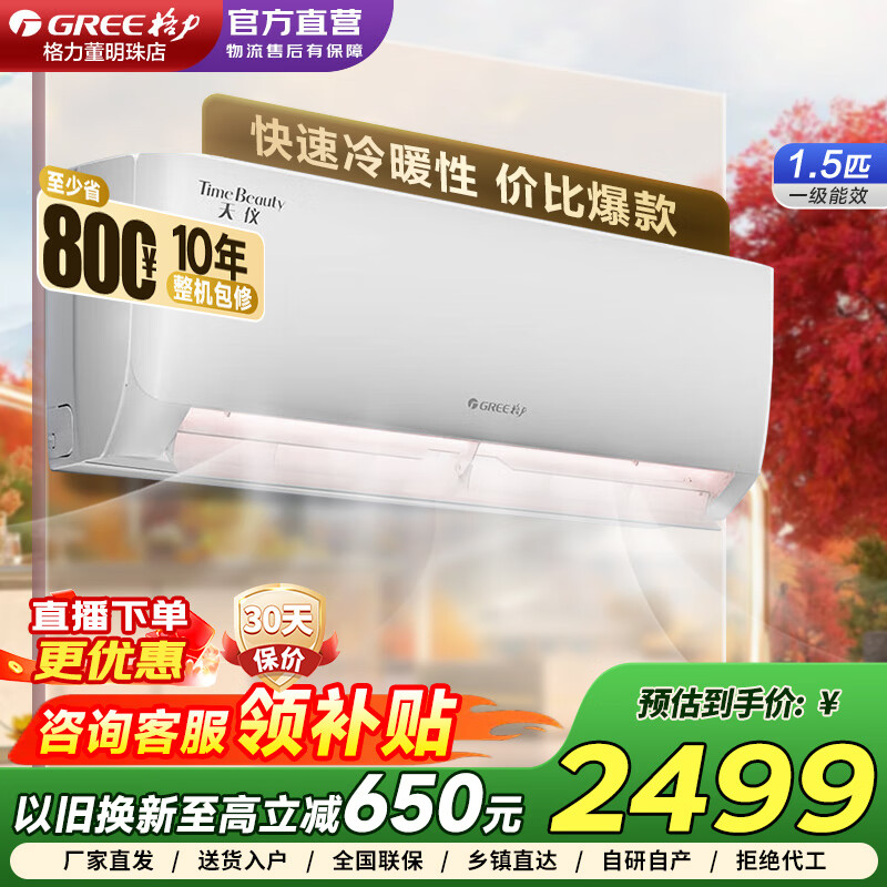 格力(GREE)空调1.5匹 天仪新一级能效 变频冷暖 56°C自清洁 卧室壁挂式空调挂机 1.5匹 一级能效 【天仪】新品上市