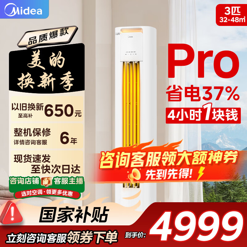 美的空调柜机 酷省电 新一级能效 节能省电变频冷暖低噪家用客厅立式柜机 国家补贴入口 以旧换新 3匹 一级能效 【酷省电升级款】