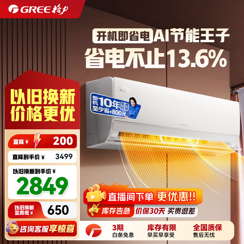 格力(GREE)新科技Ai节能王子 新1级能效 变频冷暖自清洁 壁挂式卧空调挂机 省电不止13.6% 家电国家补贴 1.5匹 一级能效 【冷静王升级款】AI节能王子