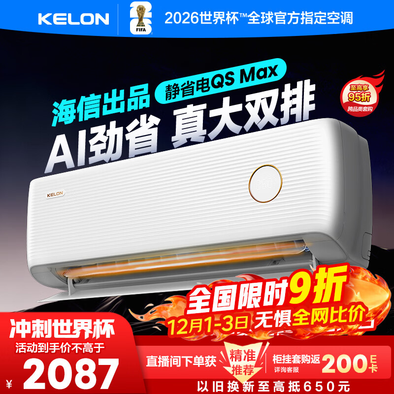科龙(KELON)空调静省电QSUltra 咨询享低价 海信出品 大1.5匹挂机 双排满配 新一级能效 1050m³大风量 15分贝 大1.5匹 一级能效 【新品高配+双排紫铜管】