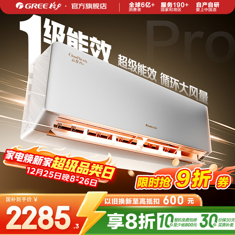 格力空调 1.5匹/大1匹 云佳Pro/云佳 新能效 变频冷暖 自清洁 壁挂式 卧室空调挂机 家电补贴 以旧换新 云佳Pro 1新一级能效 大1匹 新品上市