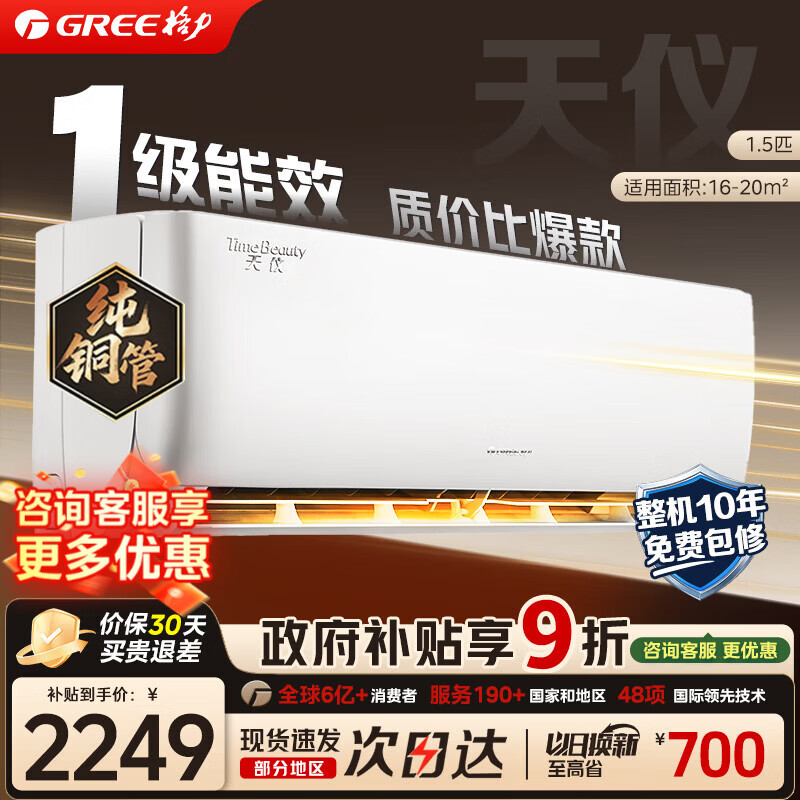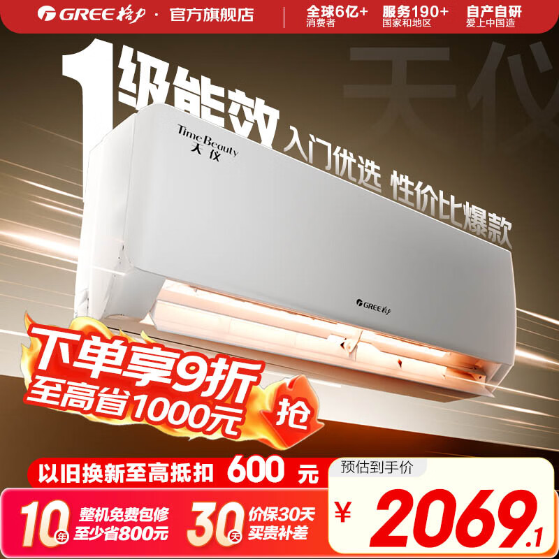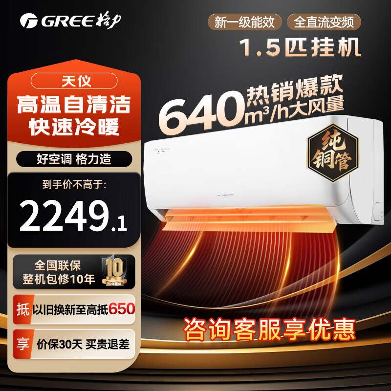 格力(GREE)空调 大1匹/1.5匹 天仪 新一级能效 变频冷暖自清洁 卧室空调挂机 家电国家补贴 以旧换新 1.5匹 一级能效 天仪挂机