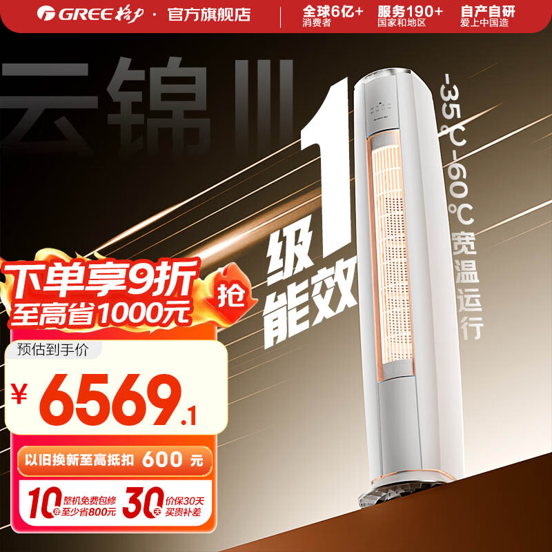 格力空调 3匹 云锦三代 国家补贴 变频冷暖 高温自清洁 智能WiFi 客厅立式空调柜机 以旧换新 3匹 一级能效 云锦三代冷酷款