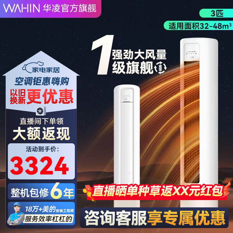 华凌空调 超省电柜机 大三匹 变频冷暖立式客厅圆柱家用智能家电 超省电max 【大风口旗舰款】 大3匹 72HB1A