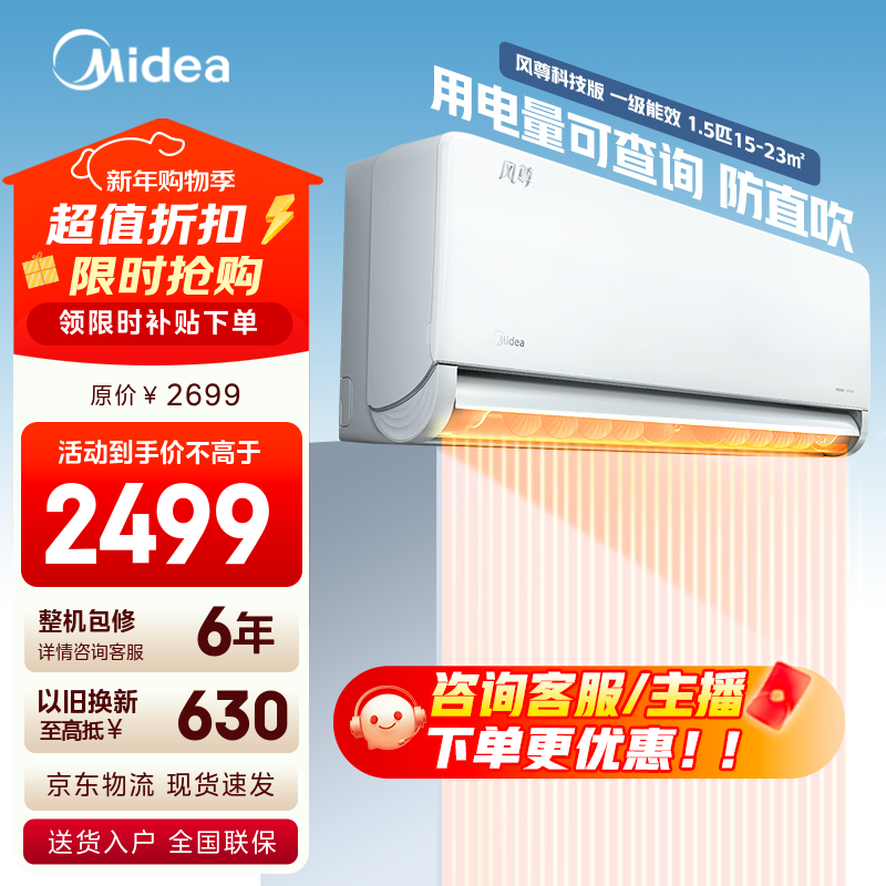美的空调 新一级能效 变频冷暖 智能 环绕风家用空调挂机风尊 防直吹 以旧换新 家电国家补贴20% 风尊 1.5匹 科技版 电量查询