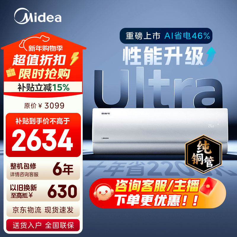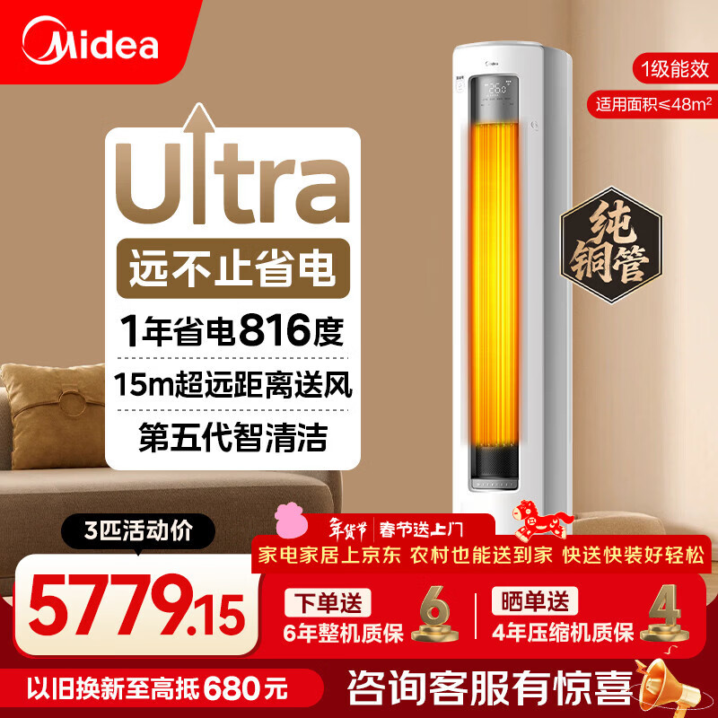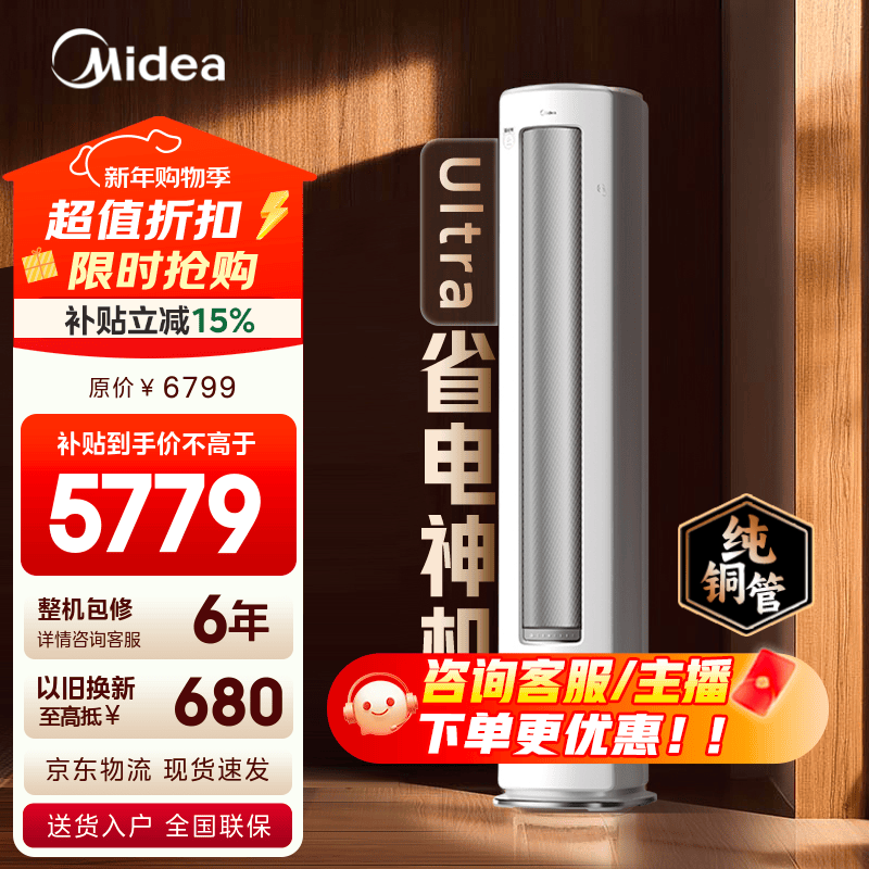 美的(Midea)空调 酷省电Ultra 新一级能效 AI酷省电技术 客厅立式柜机 变频冷暖 以旧换新 国家补贴 立享85折 酷省电Ultra 3匹 店长推荐 一级能效