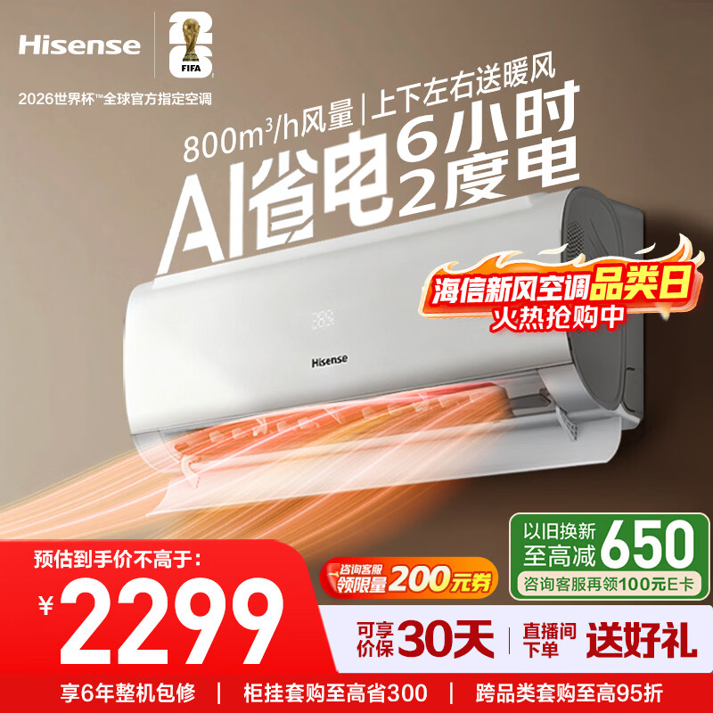 海信璀璨新风空调变频家用客厅AI智能2匹挂机以旧换新补贴50C200