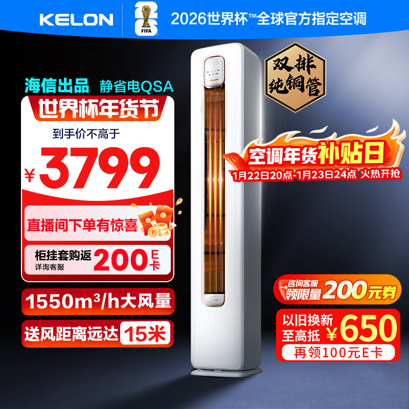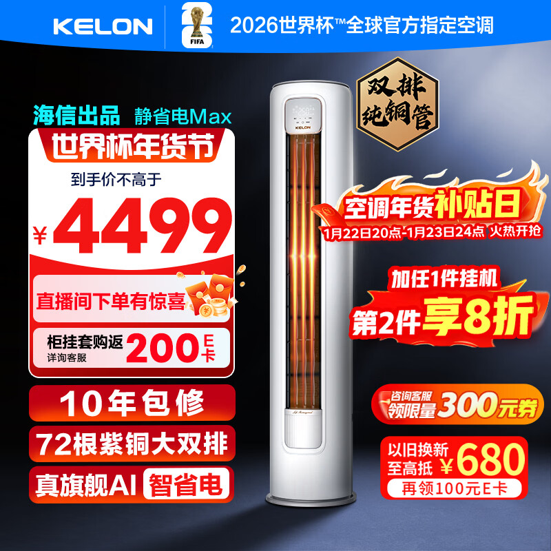 世界杯定制空调海信大薄荷智省电Ultra大3匹一级变频客厅立式柜机