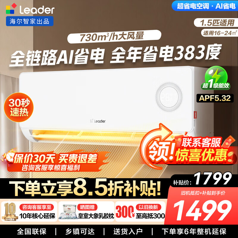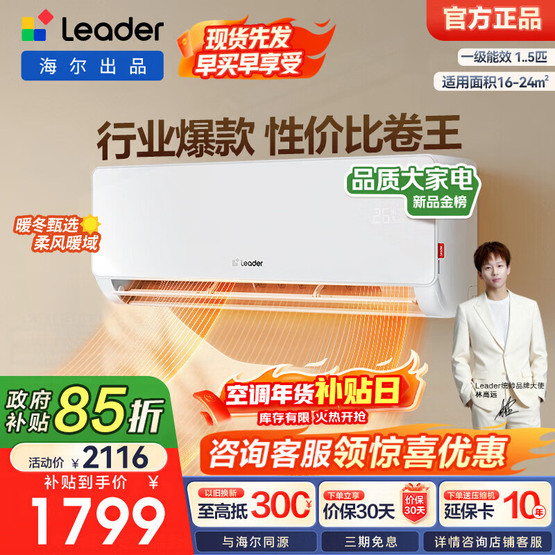 海尔(Haier)智家出品 统帅空调挂机1.5匹变频室内 一级能效 冷暖两用双排铜管蒸发器节能省电超省电以旧换新 超省电 1.5匹 【海尔出品】爆款热销35LA1