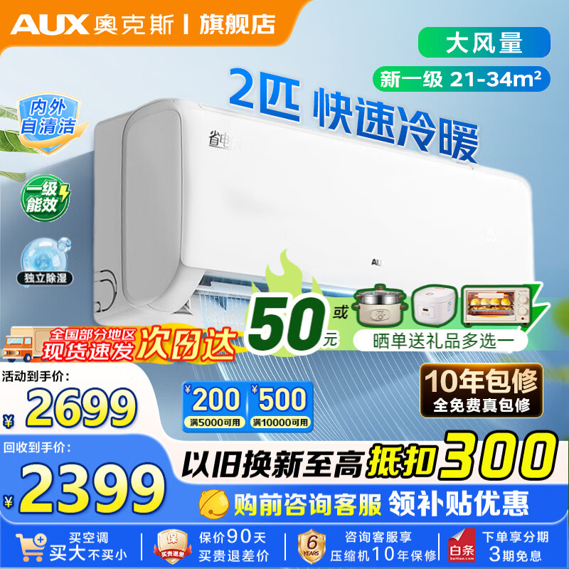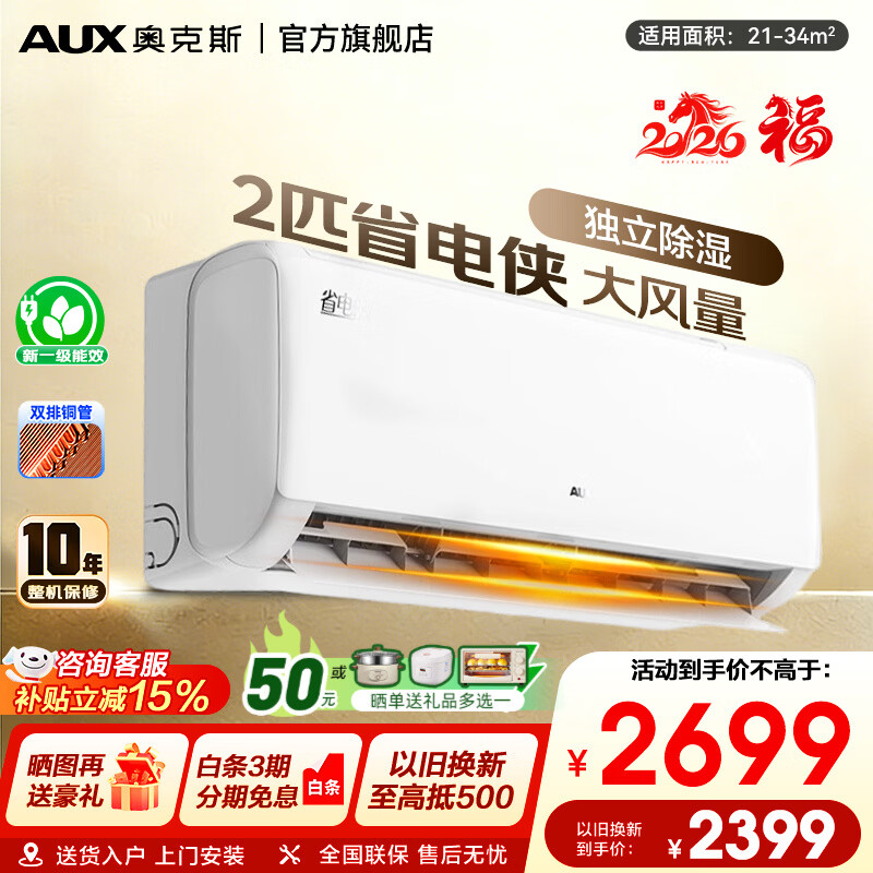 奥克斯空调2匹大挂机省电侠新一级能效冷暖奥克斯家用卧室壁挂变频奥精灵家电以旧换新厂家补贴15%空调 省电侠 2匹 一级能效大风量除湿自清洁