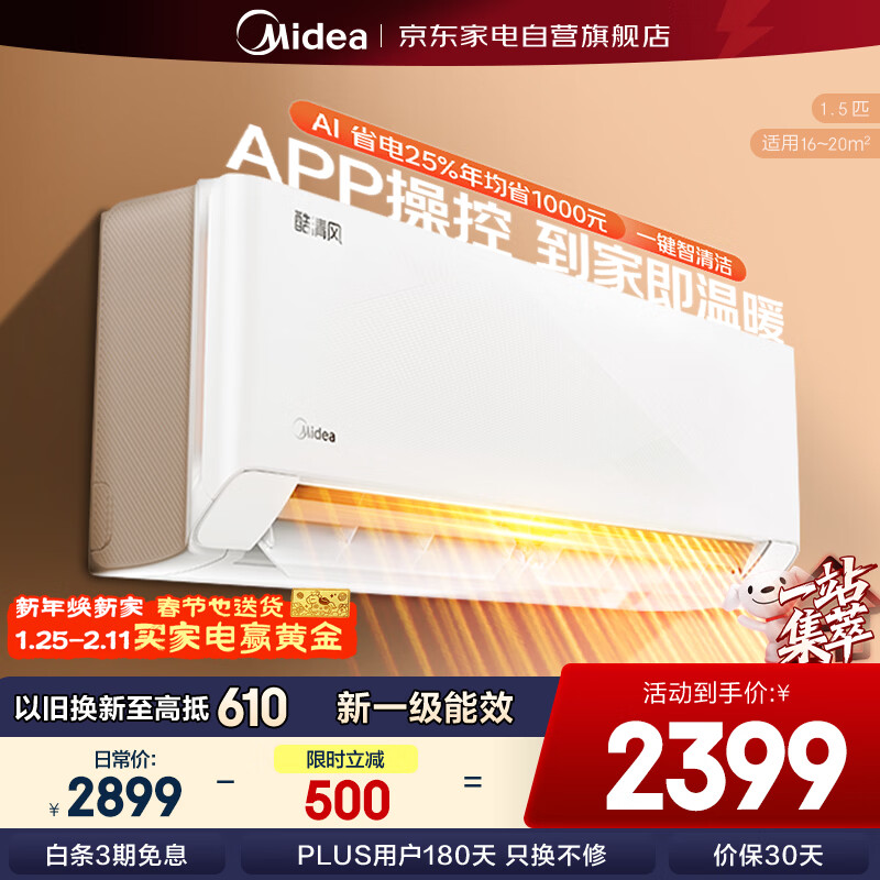 美的空调 大1匹/1.5匹 酷省电 新一级能效 变频冷暖自清洁 家用卧室空调挂机 家电国家补贴 以旧换新 酷省电Ultra 大1.5匹 双排外机制热