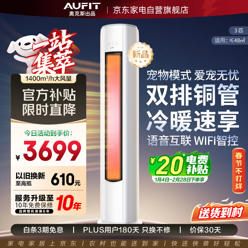 国补15%]AUFIT空调奥克斯出品3匹柜机立式家用2P一级变频冷暖旗舰