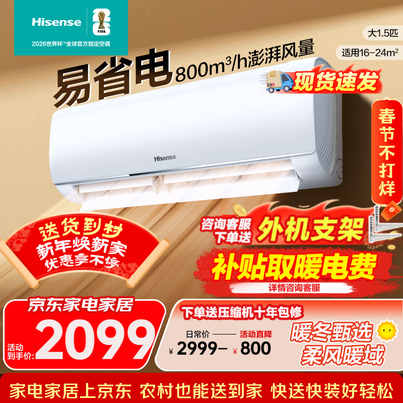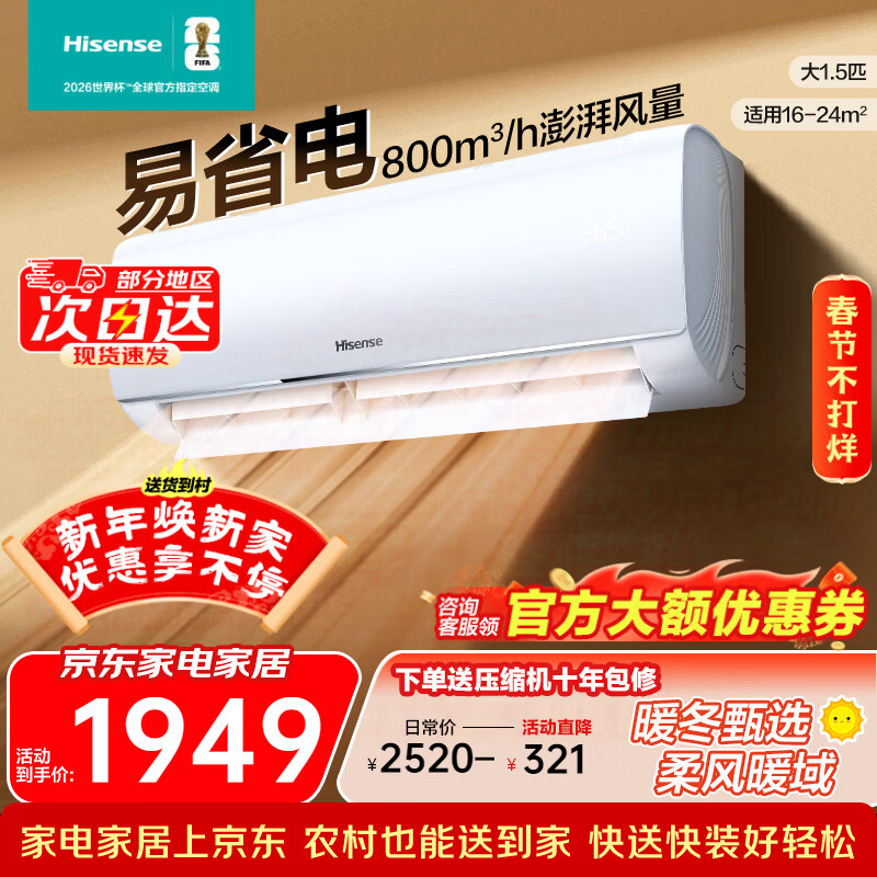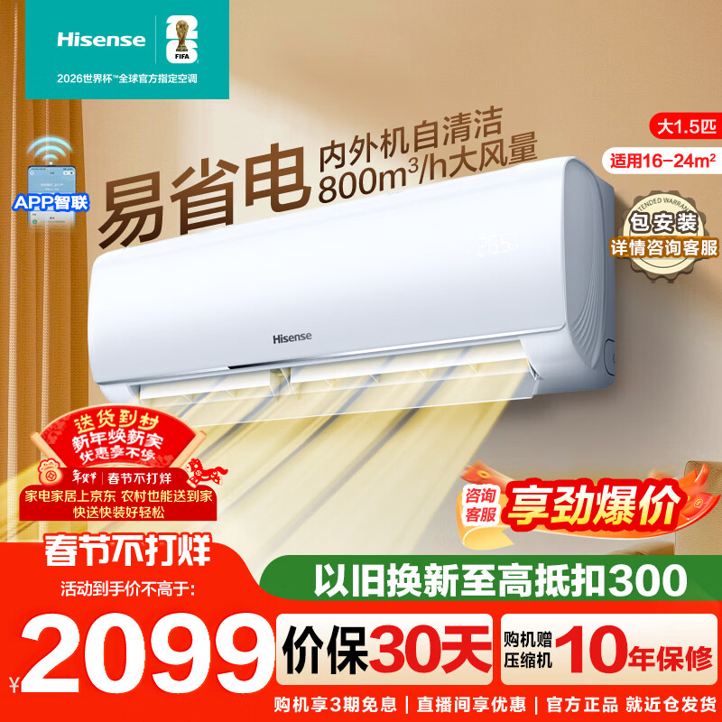 海信(Hisense)空调 大1匹/大1.5匹挂机 询单优惠 AI省电 速冷热 仿真自然风 新一级 卧室壁挂式 大1.5匹一级能效【智能互联】