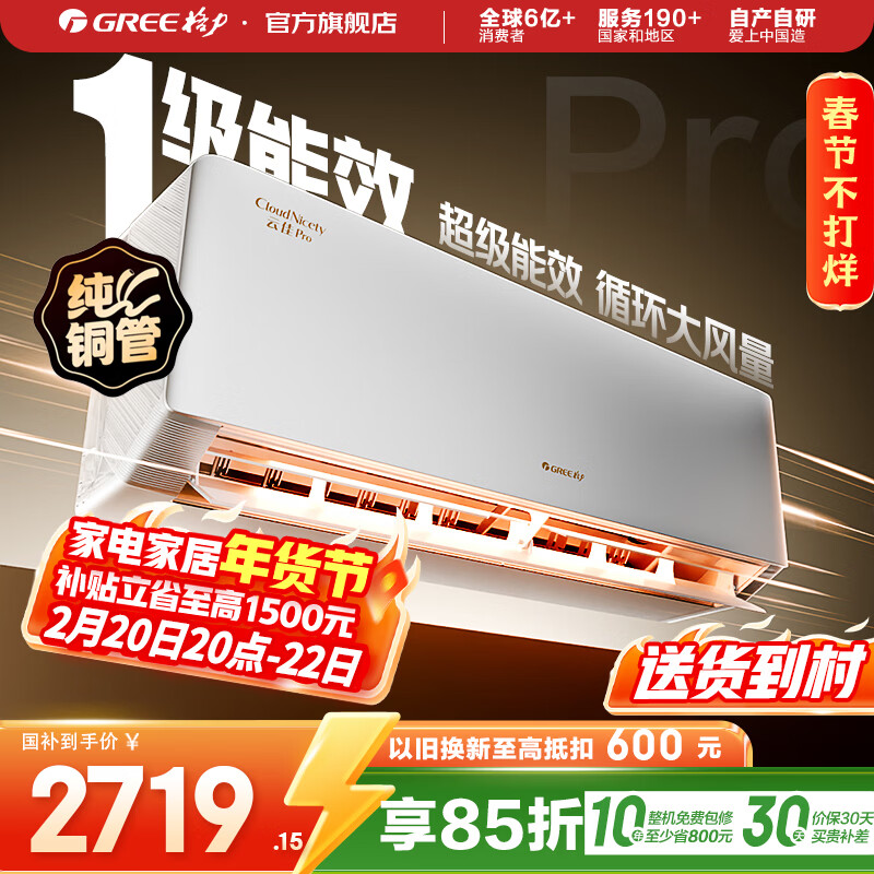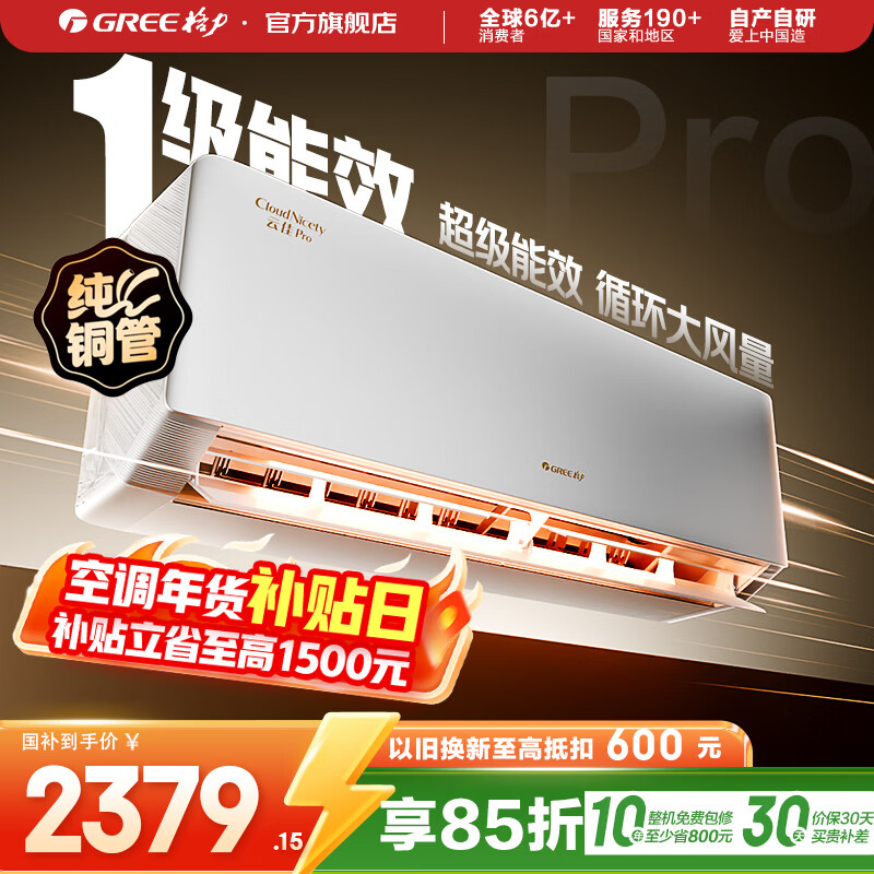 格力空调 1.5匹/大1匹 云佳Pro/云佳 新能效 变频冷暖 自清洁 壁挂式 卧室空调挂机 家电补贴 以旧换新 云佳Pro 新一级能效 大1匹 新品上市