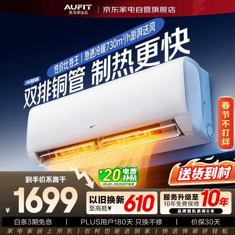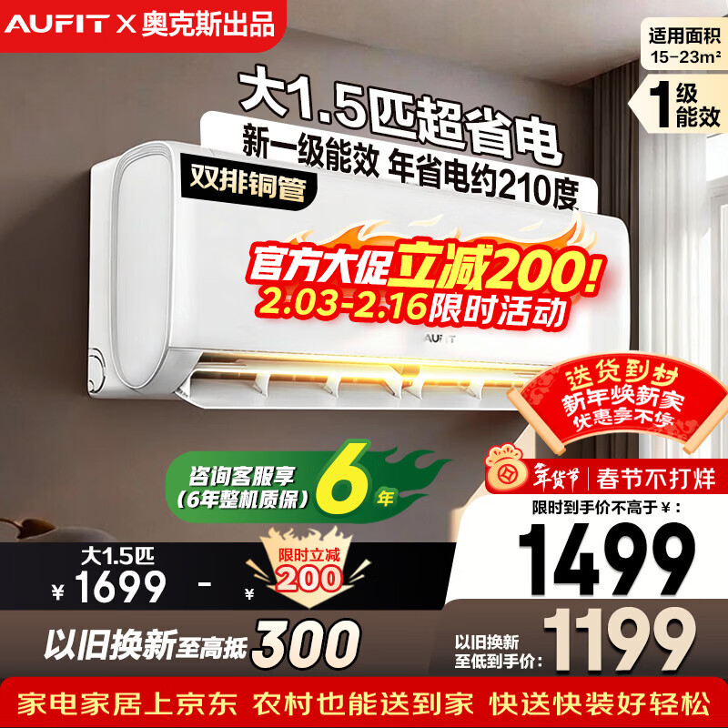 补贴]AUFIT空调奥克斯出品大1.5匹1匹一级能效变频冷暖智能家用2P