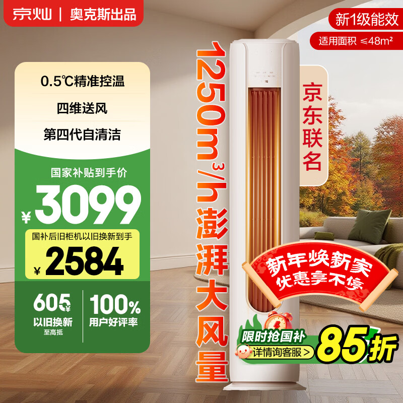 京灿 奥克斯空调 大3匹 新一级能效变频 铜管空调 变频冷暖客厅柜机 国家补贴 KFR-72LW/BpR3JDQA(B1)