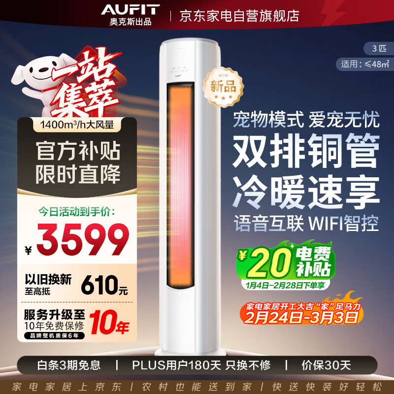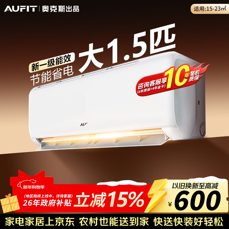 AUFIT空调奥克斯出品 国家补贴大1.5匹2匹3匹新一级能效变频冷暖家用省电壁挂机立式柜机 大1.5匹 一级能效/变频冷暖【遥控款】