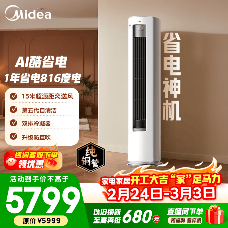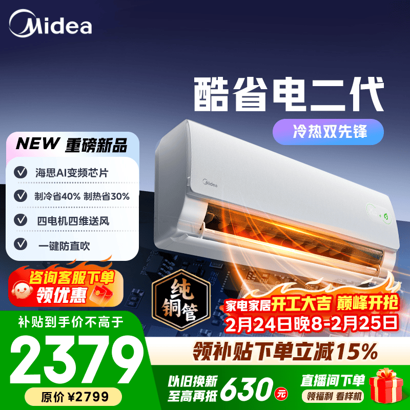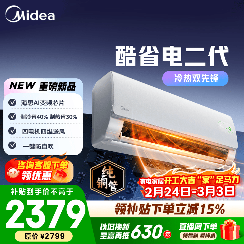 美的空调 大1匹/1.5匹 酷省电 新一级能效 变频冷暖自清洁 家用卧室空调挂机 家电国家补贴 以旧换新 酷省电二代 制热省电30% 大1.5匹
