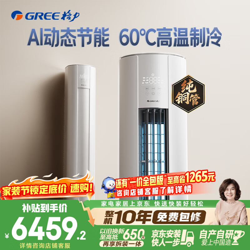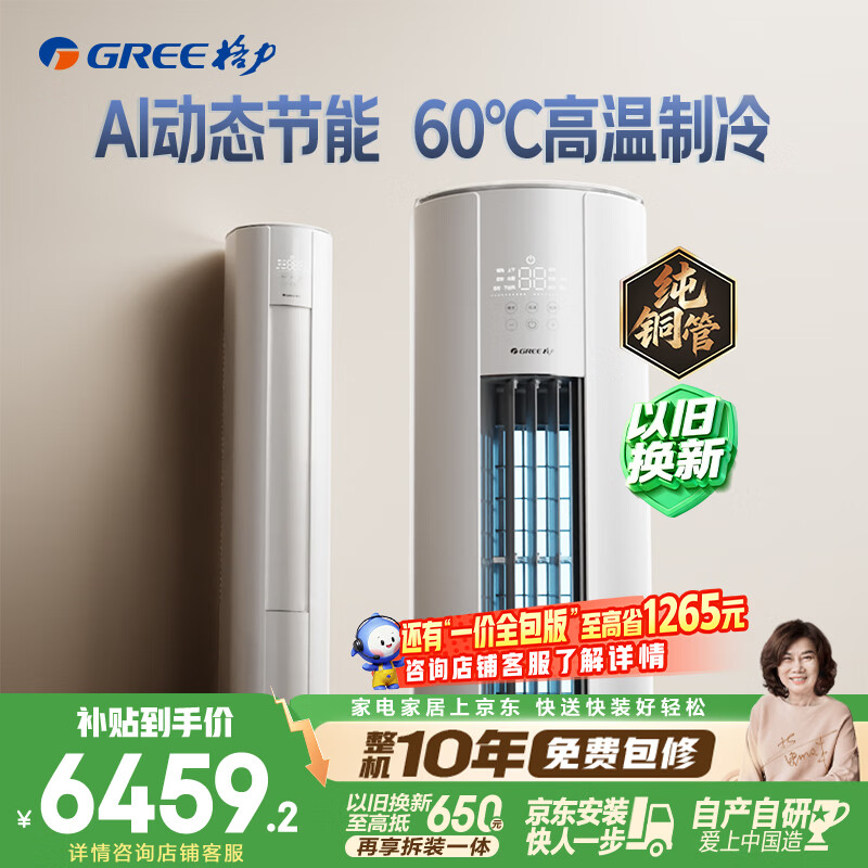 格力空调 云佳Pro 3匹 新一级能效变频 AI省电冷酷外机纯铜管客厅空调柜机 国家补贴 KFR-72LW/NhMa1BG
