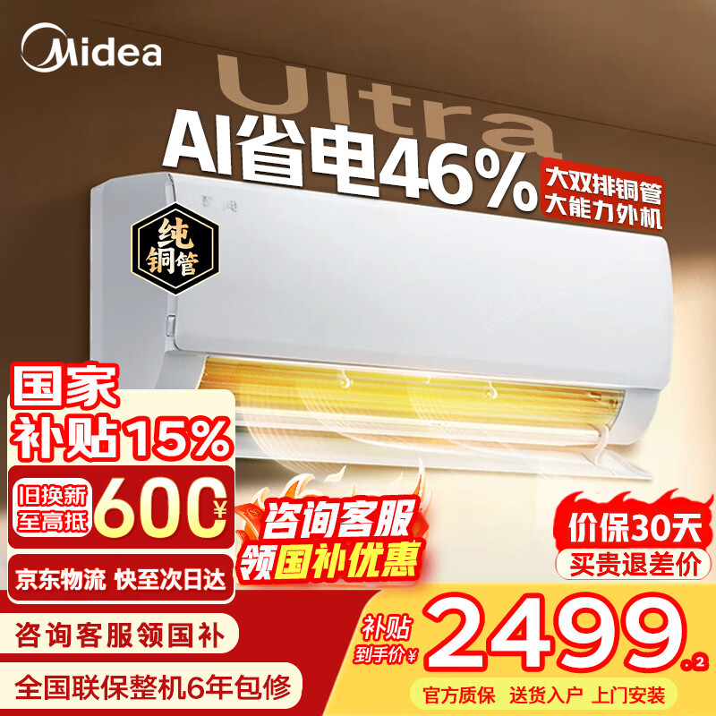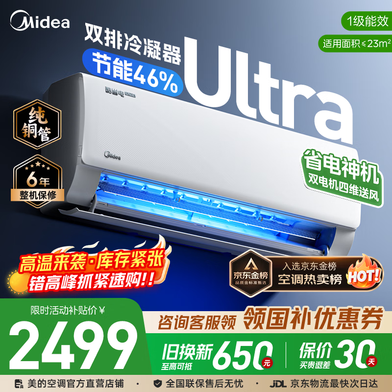 美的(Midea)空调挂机 酷省电二代pro 店长推荐大1.5匹Ultra新一级能效全直流变频节能防直吹以旧换新 国家补贴 酷省电Ultra 大1.5匹 进阶版 一级能效