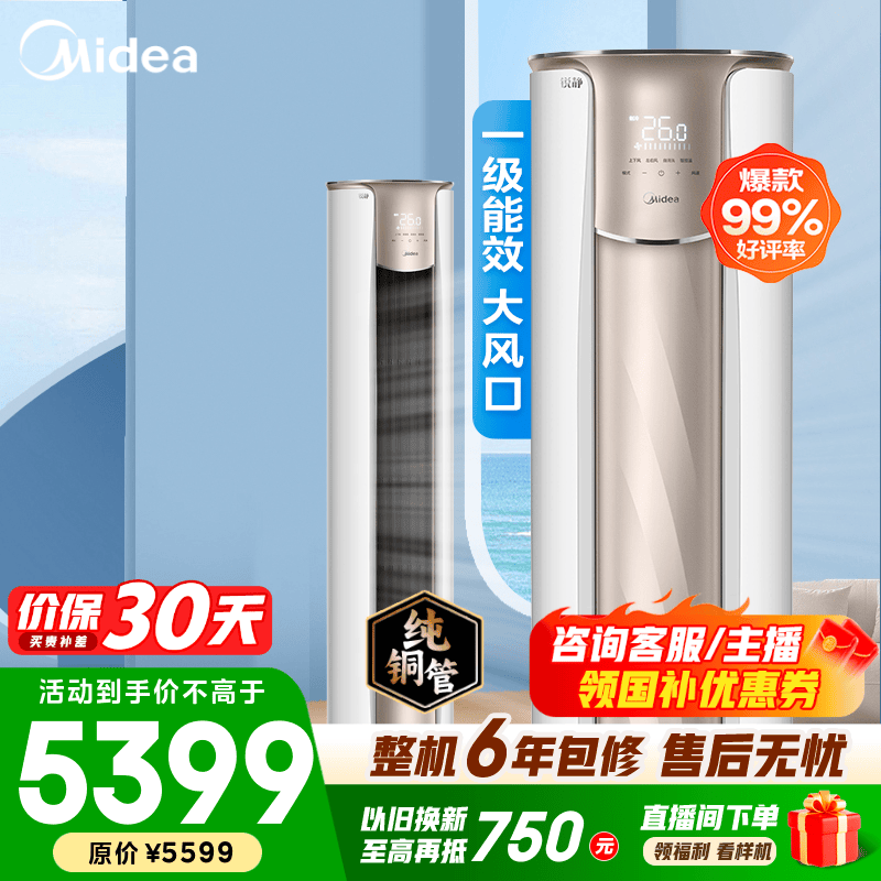 美的空调柜机 2匹/3匹 锐静/锐云 新一级能效 变频冷暖 客厅圆柜立式柜机空调 国家补贴 以旧换新 锐静 3匹