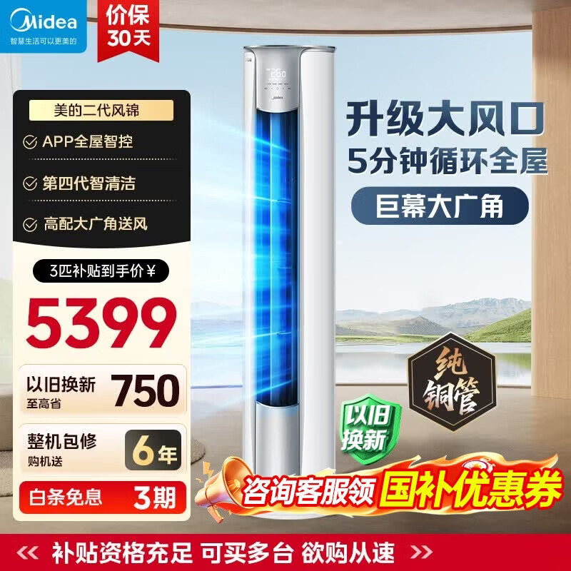 美的(Midea)空调柜机 风锦二代 3匹新一级全直流变频制冷热加大出风口圆柱立式客厅控温升级款 大3匹 一级能效【人气之选】风锦Ⅱ