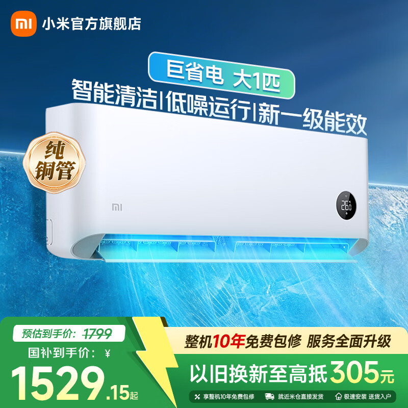 小米空调 巨省电 新一级能效变频冷暖壁挂式卧室智能空调挂机30S速冷60S速热 智慧清洁 国家补贴 巨省电 1.5匹 宽温域运行APF 5.27