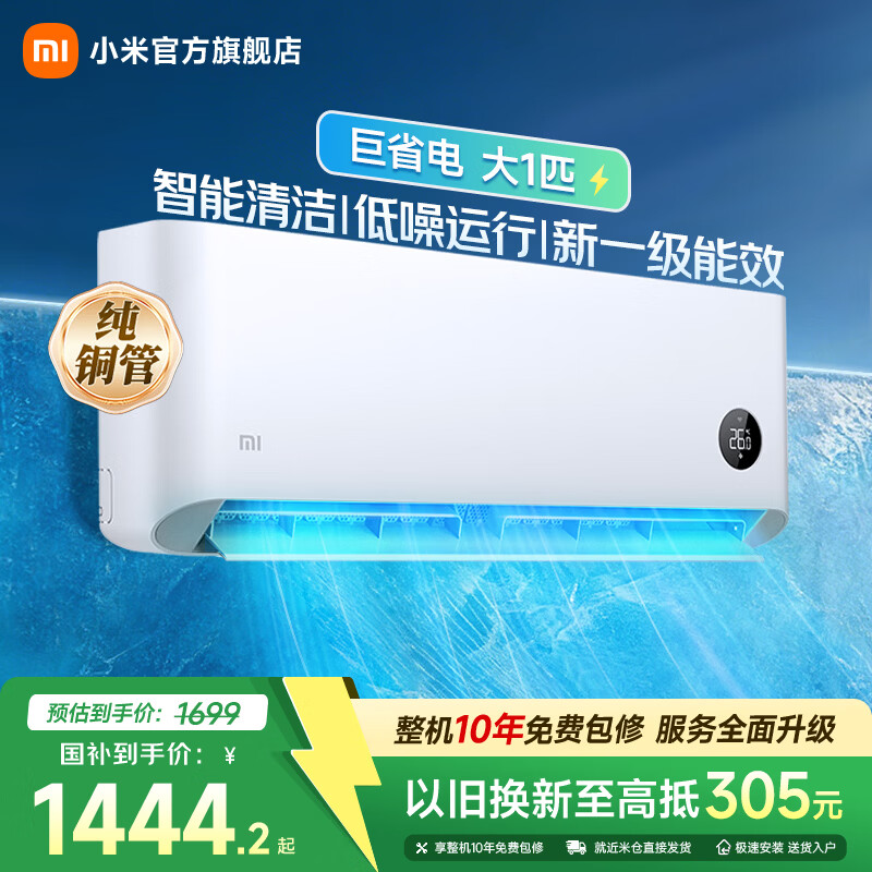 小米空调大1匹新一级能效巨省电 变频冷暖 壁挂式卧室智能空调 KFR-26GW/V1A1 国家补贴 巨省电 快速制冷/热 大1匹 低噪运行 大1匹 一级能效