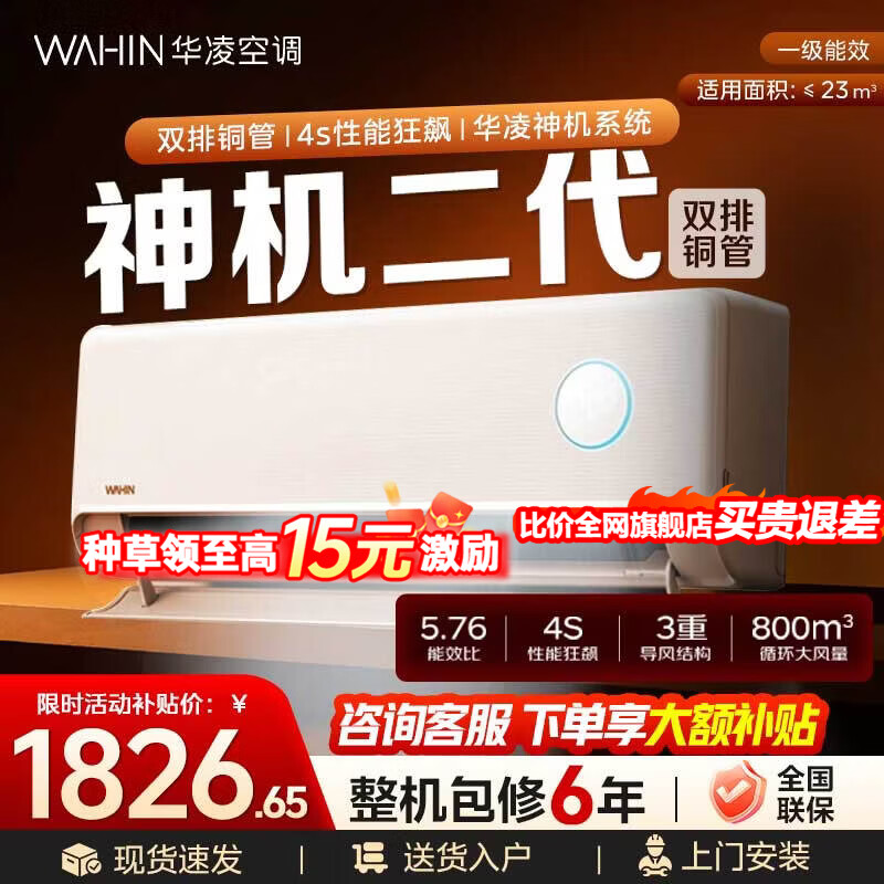 华凌空调 神机二代 大1.5匹空调 超省电Pro 超一级能效 华凌神机二代Pro 变频冷暖挂机以旧换新 大1.5匹 一级能效神机二代Pro 双排铜管