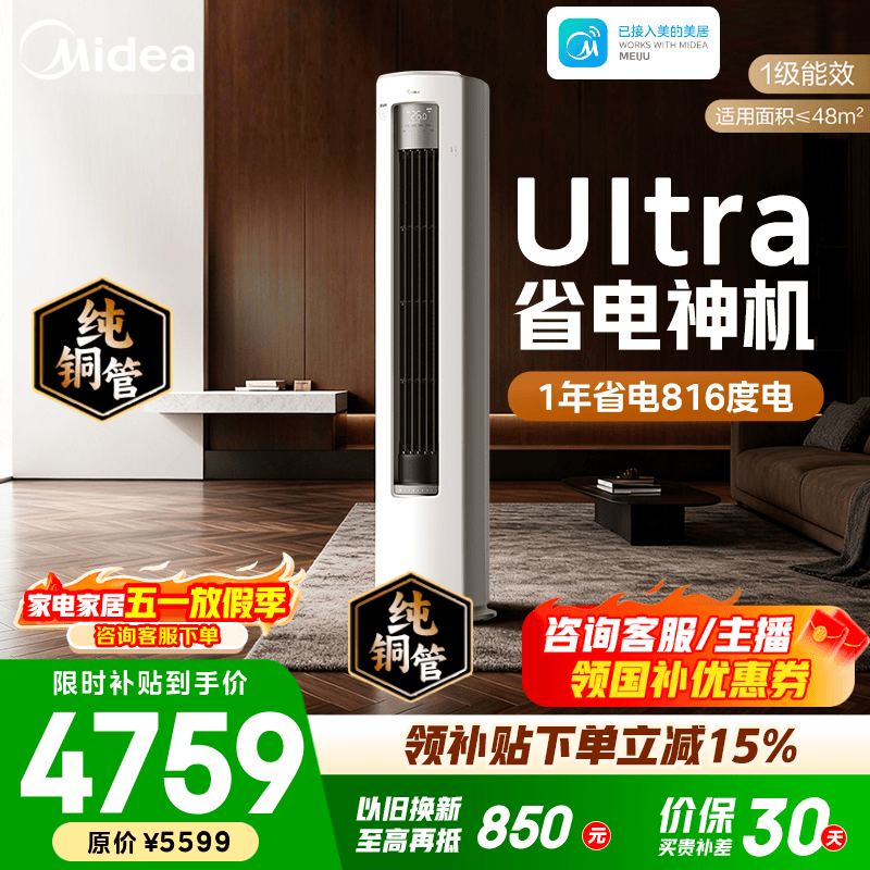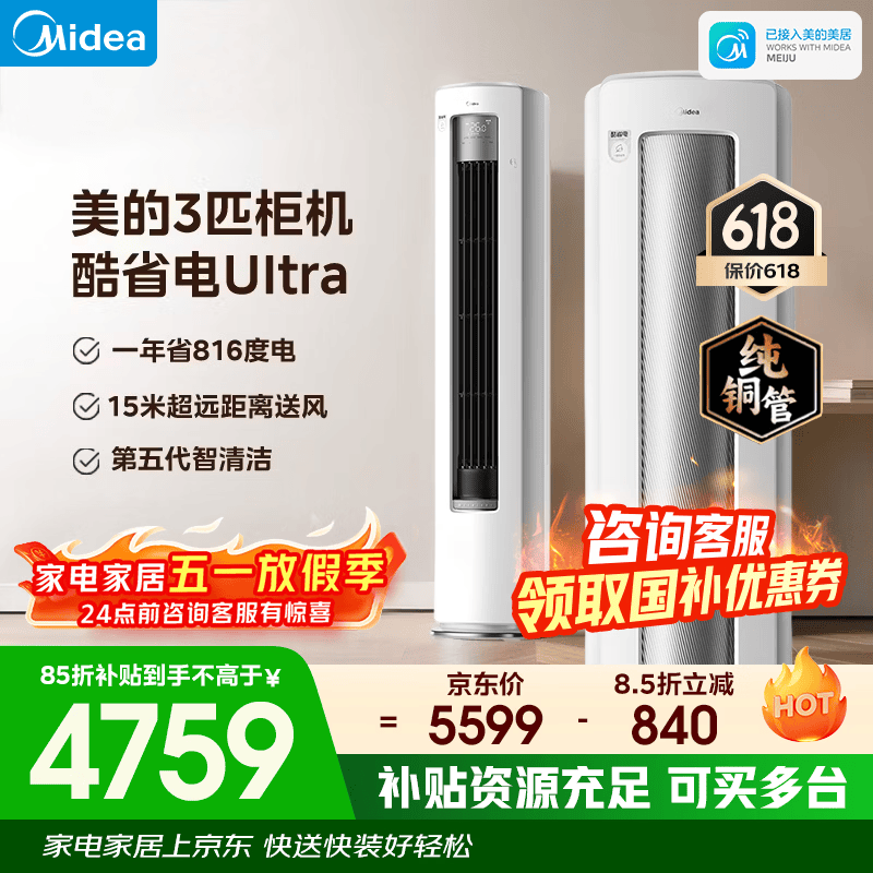 美的(Midea)酷省电Ultra立式空调2匹/3匹客厅立式柜机新一级能效节能省电 变频冷暖智能家用 以旧换新国家补贴 酷省电Ultra 大3匹 一年省816度电