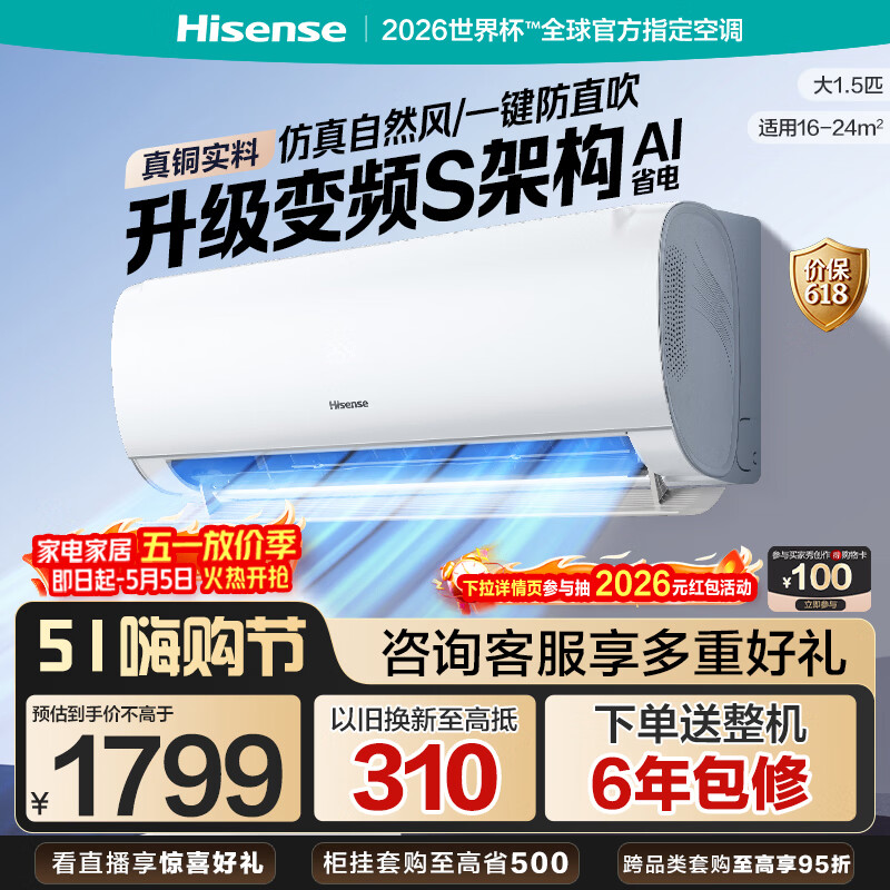 海信新风空调深睡宝X5大1.5匹挂机双排纯铜管新风换气静音睡眠语音控制挂式世界杯定制KFR-35GW/X5E1-1