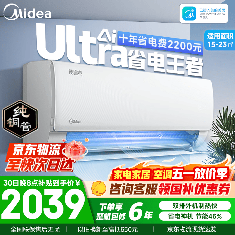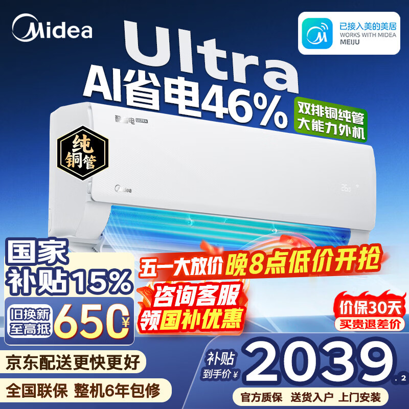 美的(Midea)空调挂机大1.5匹 酷省电二代Pro 店长推荐 双排铜管一级能效变频冷暖家用空调 以旧换新 国家补贴 酷省电Ultra 大1.5匹 一级能效
