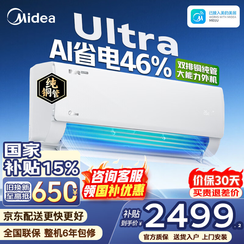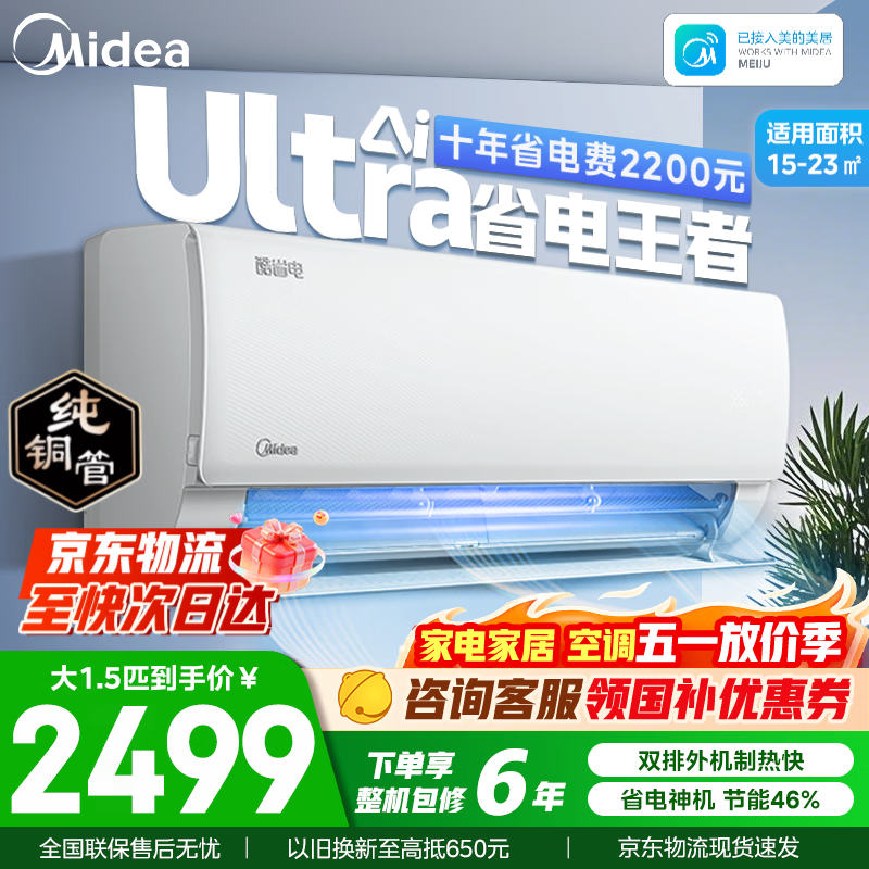 美的空调挂机 大1.5匹/1匹 酷省电二代 新一级能效 变频冷暖自清洁家用卧室空调 家电国家补贴以旧换新 酷省电Ultra 大1.5匹 高配双排铜管