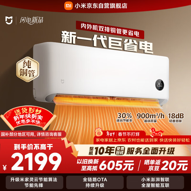 小米 空调 米家 巨省电双排款 1.5匹一级能效 内外机双排铜管 空调挂机35GW-PG15/N1A1 整机十年质保