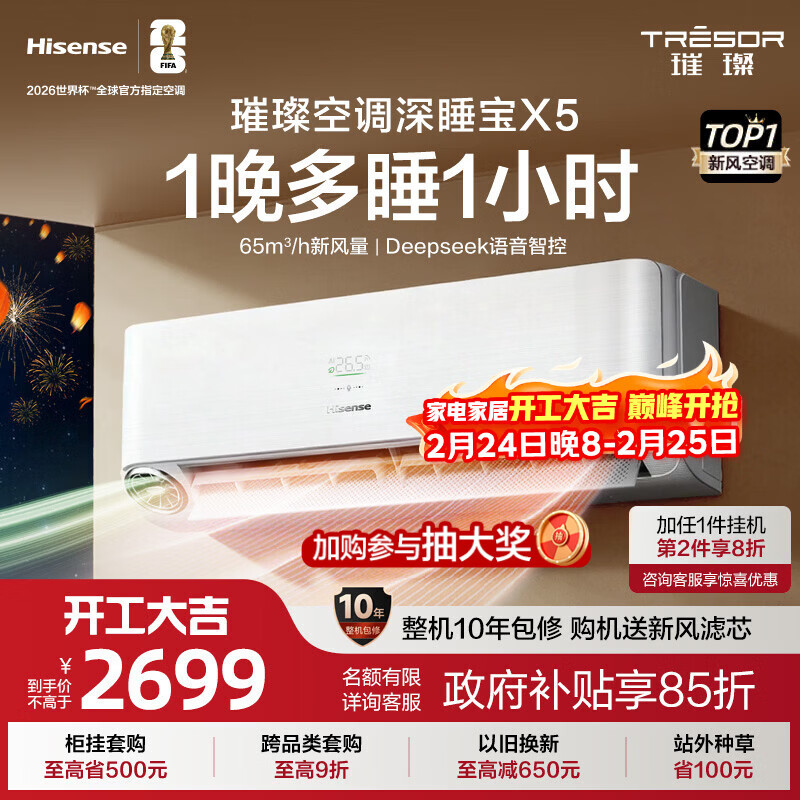 海信(Hisense)空调深睡宝X5 世界杯定制空调 大1.5匹 AI洁净新风空调 DeepSeek 语音智控 国家补贴 KFR-35GW/X5E1-1