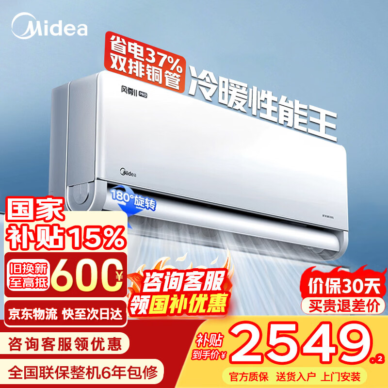 美的(Midea)空调挂机风尊二代Pro大1.5匹 新一级能效 变频节能冷暖两用壁挂式卧室空调防直吹APP智控 以旧换新 风尊二代Pro 大1.5匹 大双排 冷暖性能王