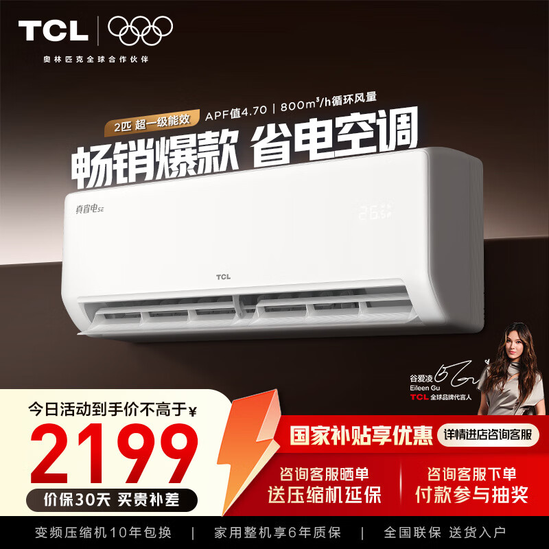 TCL空调1.5/2匹真省电SE 空调挂机一级能效 变频冷暖 壁挂式卧室挂机 以旧换新 2匹 一级能效真省电SE