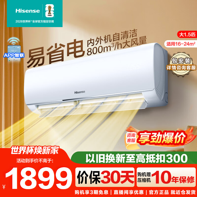 海信(Hisense)大1.5匹空调挂机【咨询客服享大额优惠】 易省电 AI省电 速冷热 大风量 新一级能效 卧室壁挂式 大1.5匹一级能效【800m³/h大风量】E290 享压缩机十年包修权益