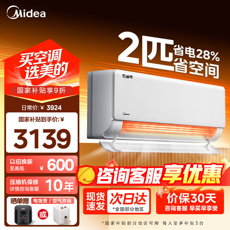 美的(Midea)空调2匹挂机酷省电新一级能效壁挂式变频冷暖大风量客厅大卧室主卧挂机8折家电政府补贴20%国家 酷省电 2匹 一级能效 KFR-46GW/N8KS1-1