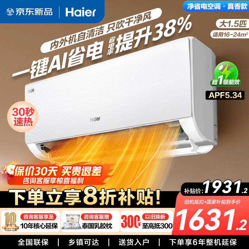 海尔(Haier)新品【小红花】新一级能效 家用变频冷暖空调挂机 独立除湿 卧室省电静音防直吹空调 国家补贴20% 净省电 1.5匹 一级能效新品净省电 35E1-1