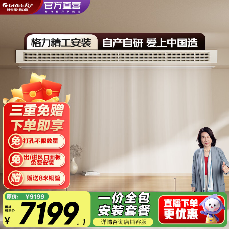 格力(GREE)风静享 中央空调 风管机一拖一 1级能效 一价全包 全直流变频 格力精工安装 风静享 3匹 风管机 一价全包