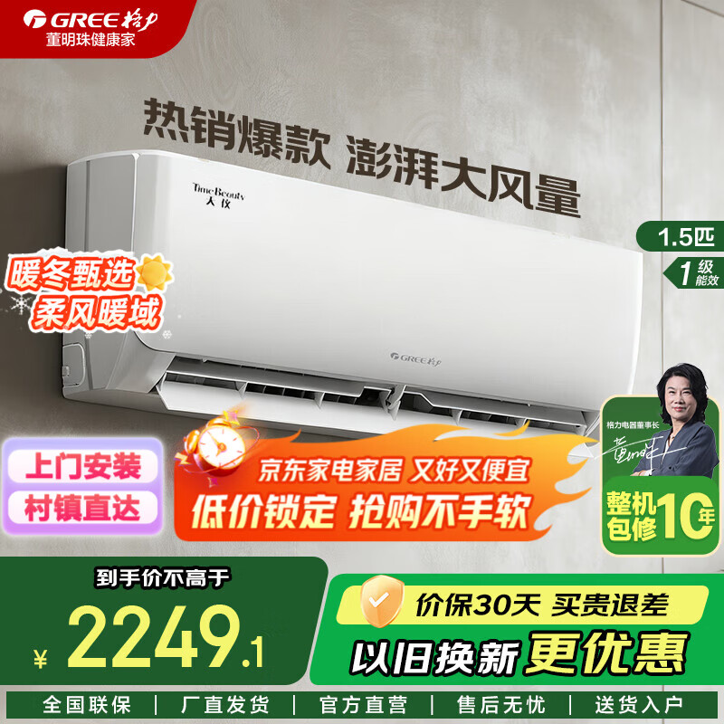 格力(GREE)空调【家电国家补贴】节能省电 1.5匹 大1匹 天仪 新一级能效 变频冷暖自清洁 壁挂式卧室空调挂机 1.5匹 一级能效 格力天仪 挂机空调 新品推荐