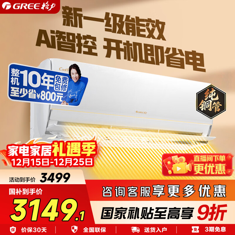 格力(GREE)空调AI节能王子1.5匹【舒适风不吹人】一级能效变频冷暖 内外自洁WIFI智控省电壁挂式静音空调挂机 1.5匹 一级能效 AI节能王子【开机即省电】