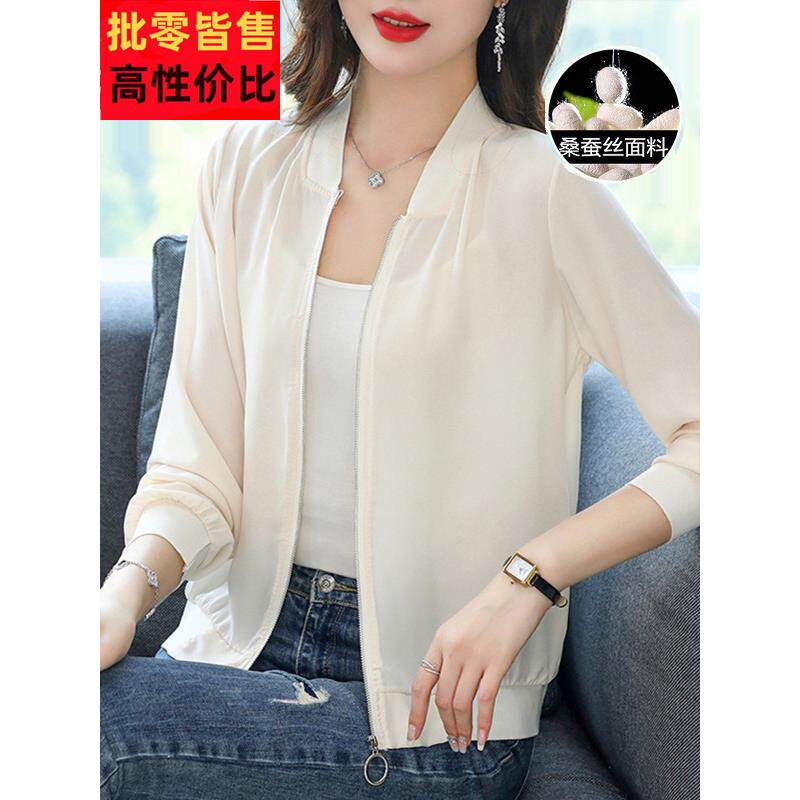 桑蚕丝防嗮服女夏装新款长袖空调衫薄外套开衫纯色外搭真丝防嗮衣