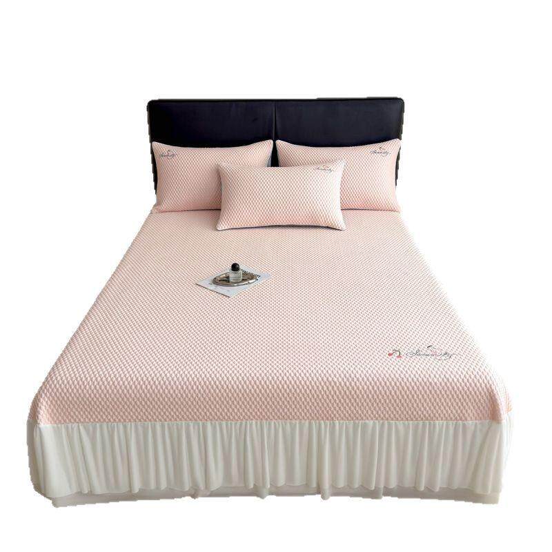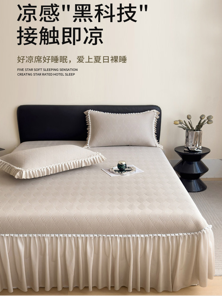 夏季冰丝豆豆凉席床裙三件套可机洗凉感空调凉席子学生宿舍床上用