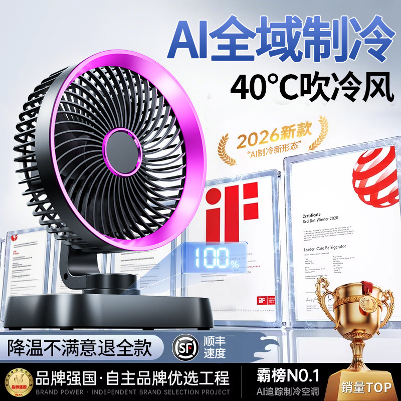 2026新款桌面风扇办公室工位小型制冷空调usb充电迷你便携式电风扇学生上课静音超长续航厨房用壁挂降温神器