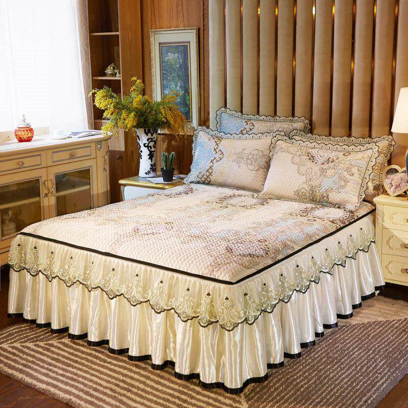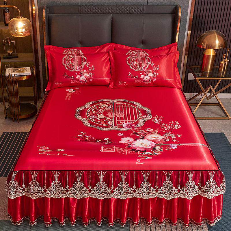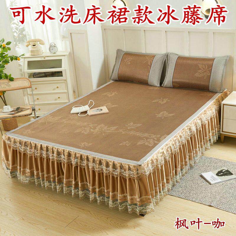 韩式蕾丝冰丝席凉席三件套夏季床罩空调软席可水洗可折叠床裙席子