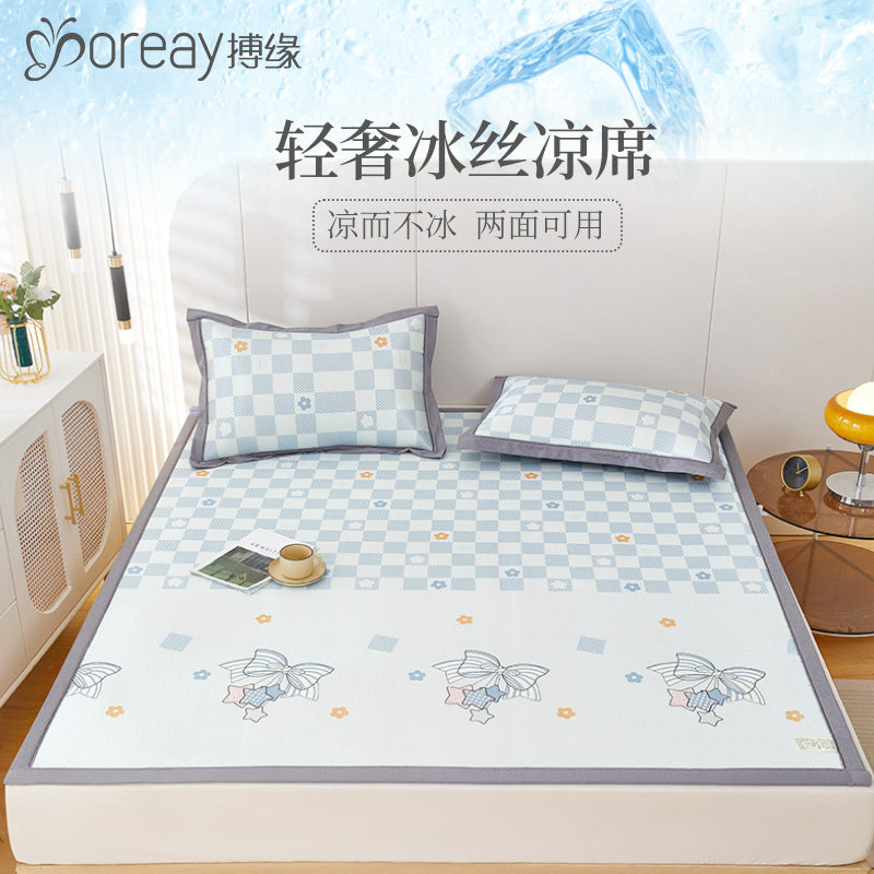 远梦凉感冰丝席三件套夏季凉席可水洗夏天柔软空调凉席子1.5/1.8m